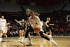 Ball State junior guard Karsyn Norman plays defense on her opponent Feb. 28 at Worthen Arena. Kaibre ...
