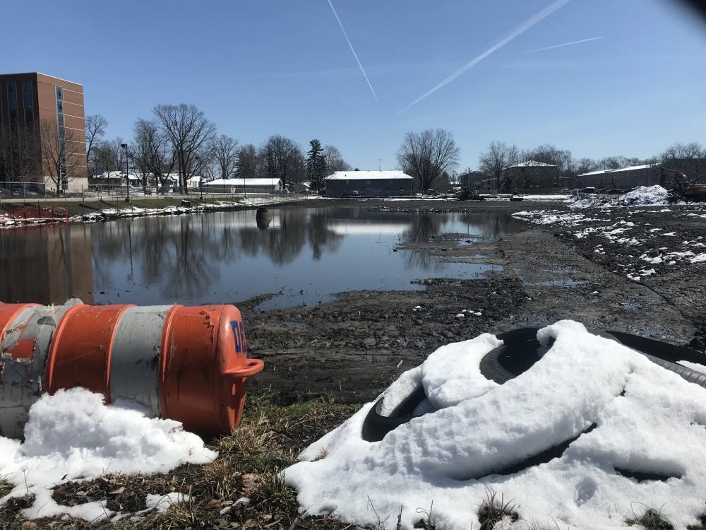 Officials are saying that standing water at the construction site of a future Ball State parking garage on New York Avenue will not cause a problem.