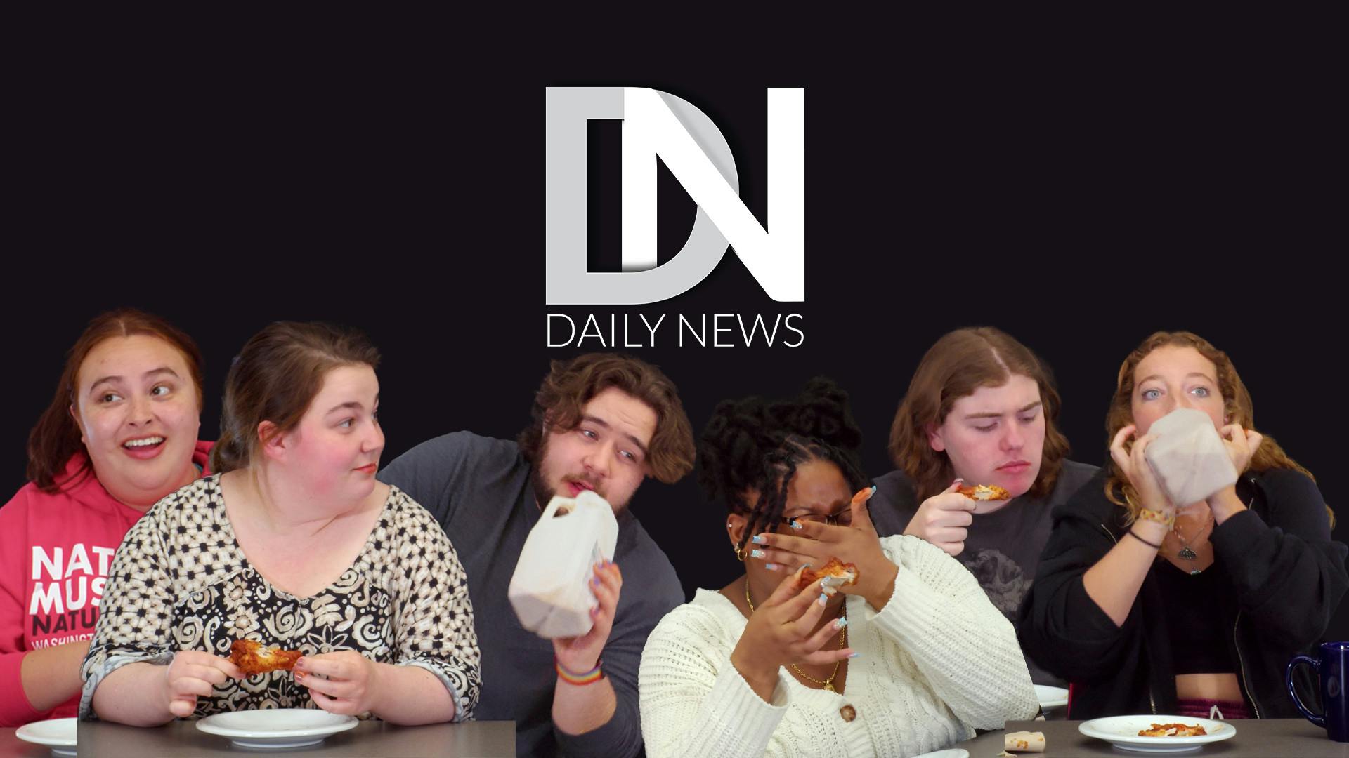 Opinion Editor Grayson Joslin hands out the latest Daily News issue in an unusual costume